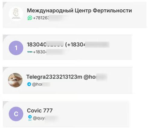 In the header of the "Chats" section, next to the contact's name, the logo of the messenger used to communicate with this contact (the connection messenger) will be displayed.&#x20;