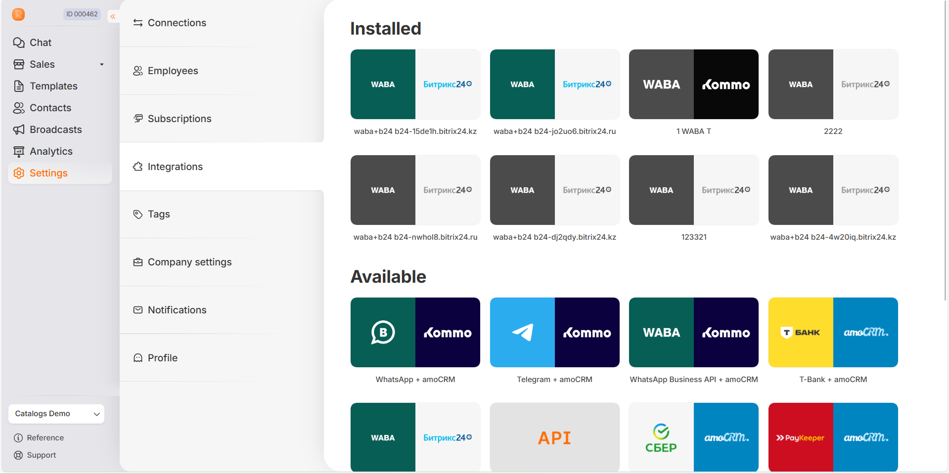 * connect multiple integrations of the same type on different Kommo.com domains;&#x20;