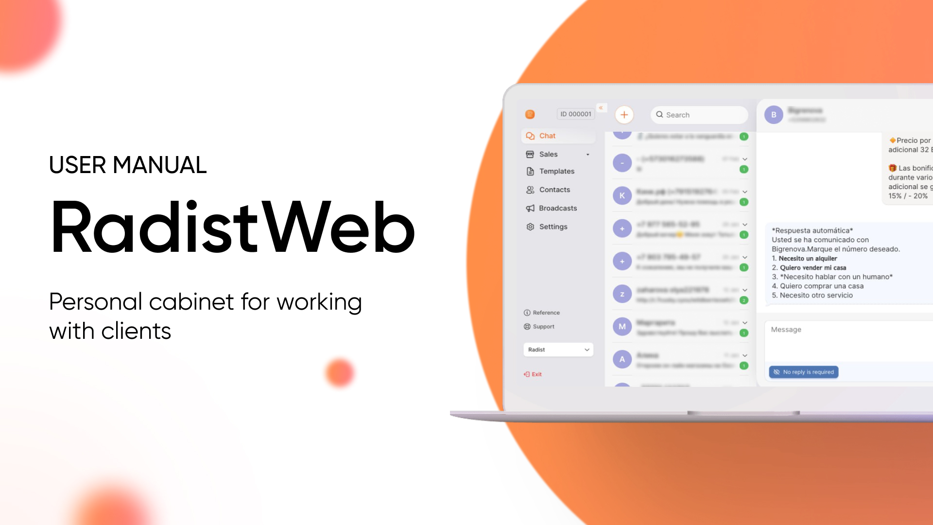 **Radist Web** is a personal office for comfortable work with clients, with the ability to connect WhatsApp Business, WhatsApp, Telegram, banking integration with AmoCRM (Kommo.com).&#x20;