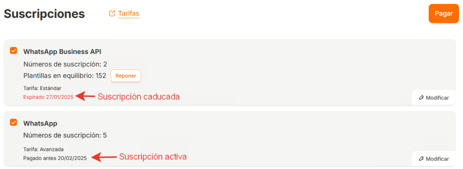 Importante: Si la fecha de vencimiento de la suscripción es inferior a 5 días: el cliente no Para pagar una suscripción concreta y cómo se pagan las suscripciones, consulte la siguiente sección [Cómo se pagan las suscripciones](https://docs.radist.online/docs/espanol-1/productos-1/radist-web/suscripciones/como-se-pagan-las-suscripciones)