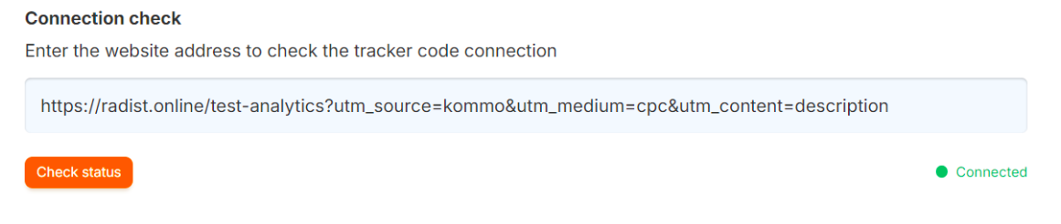 When you click on “Check status” at the site address entered in the field, it checks whether our tracker is connected to the site.
