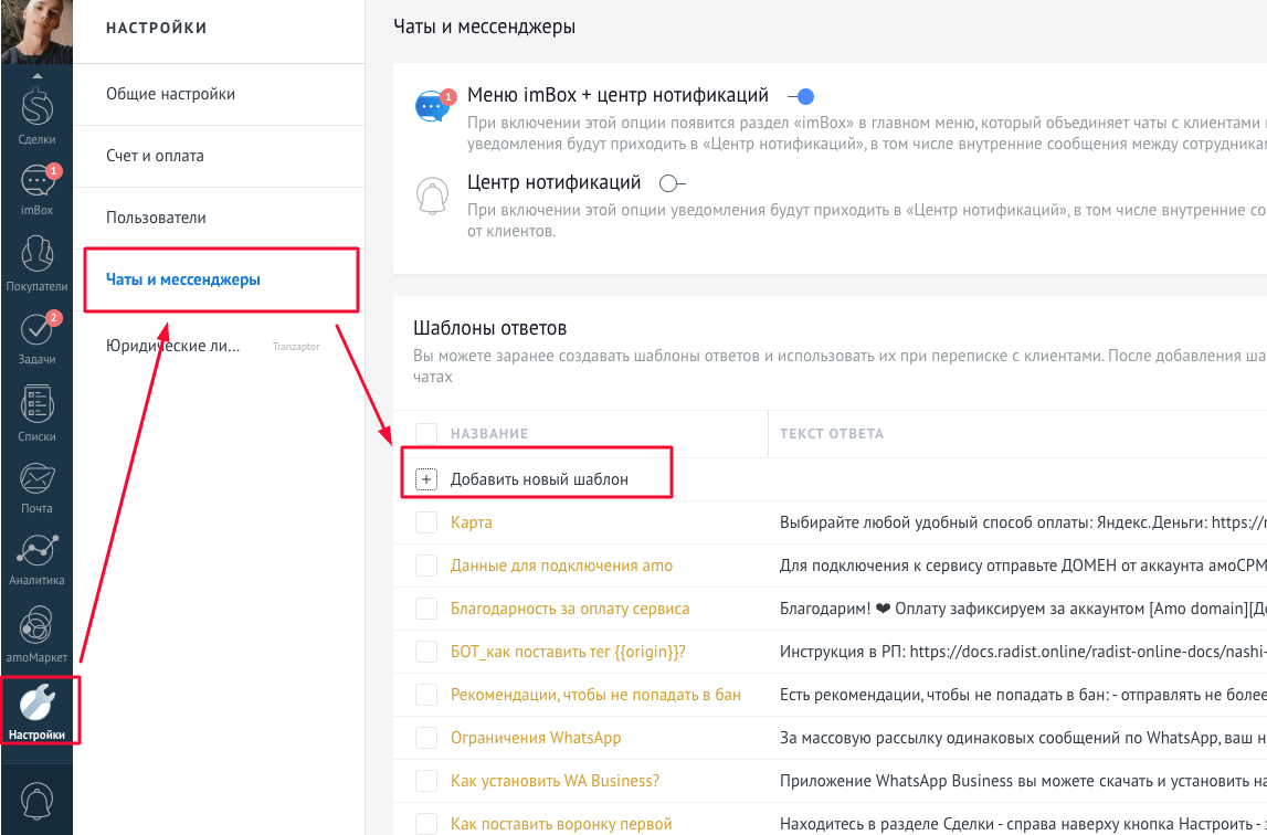 → Интеграция amoCRM WhatsAppШаблонов своих у нас нет, мы пользуемся амовскими.