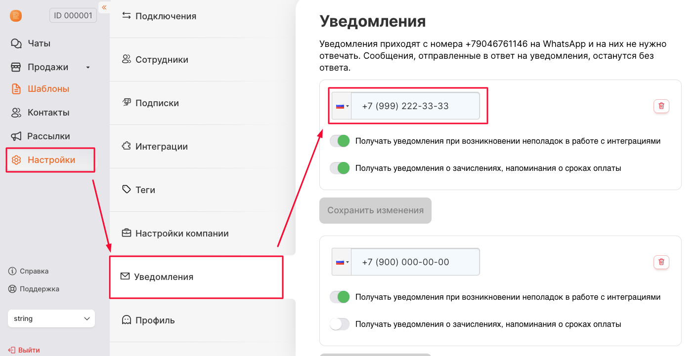> *Для восстановления интеграции вам нужно повторно авторизовать номер через смс-код в нашем личном кабинете.*