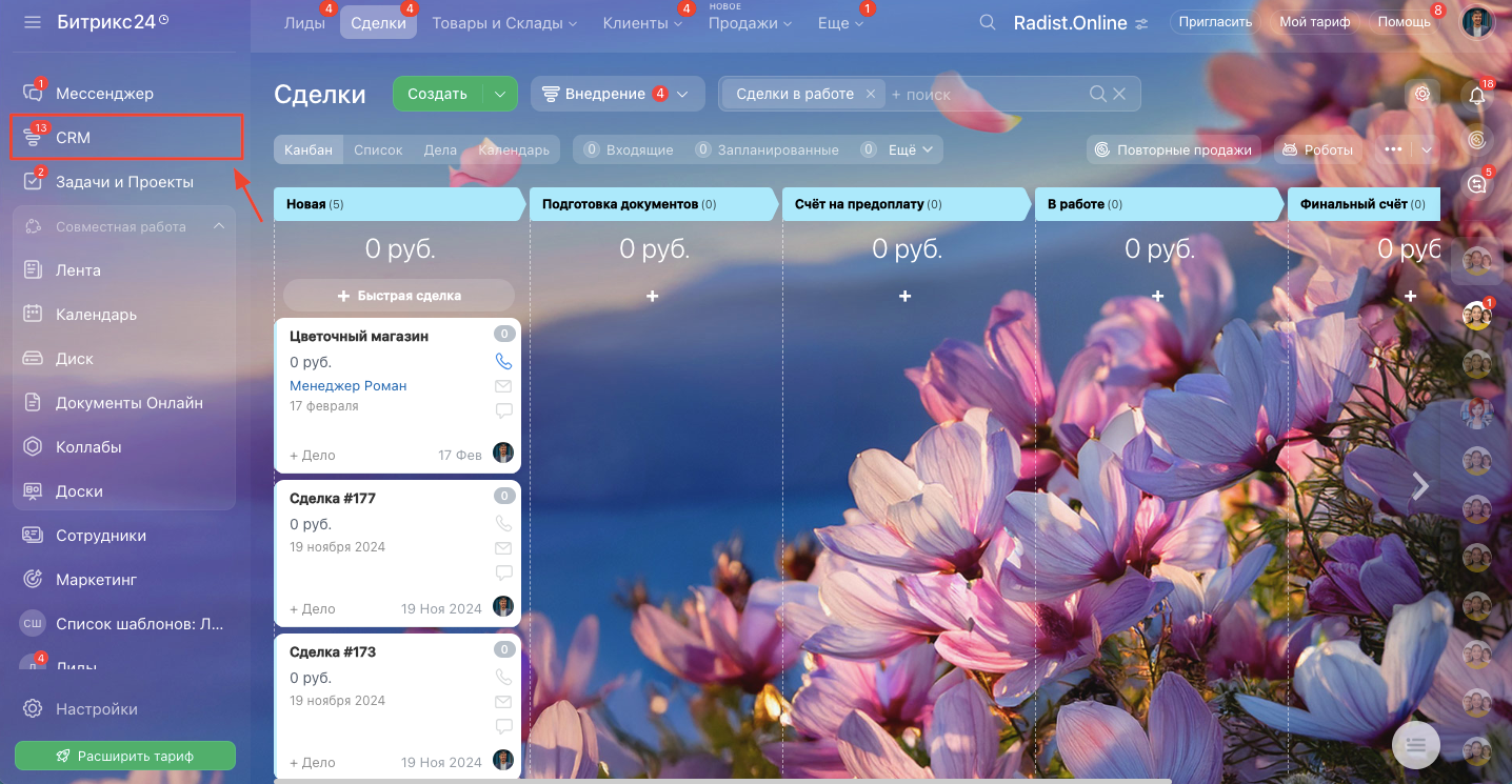 1. Перейдите в раздел **CRM**. <br>