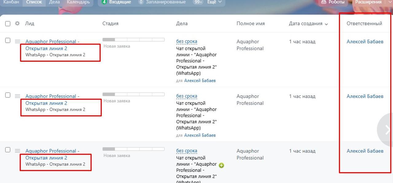 Если вы хотите, чтобы ответственный назначался автоматически при создании лида (например, по очереди или по определённым условиям), вы можете настроить робота: