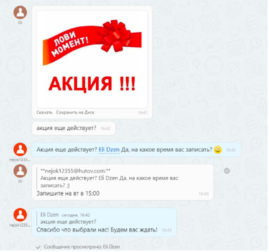 Робот не заставит ждать клиента и мгновенно отправит ему то сообщение, которые вы захотите: стоимость товаров, условия доставки, ссылка на оплату и т.д.
