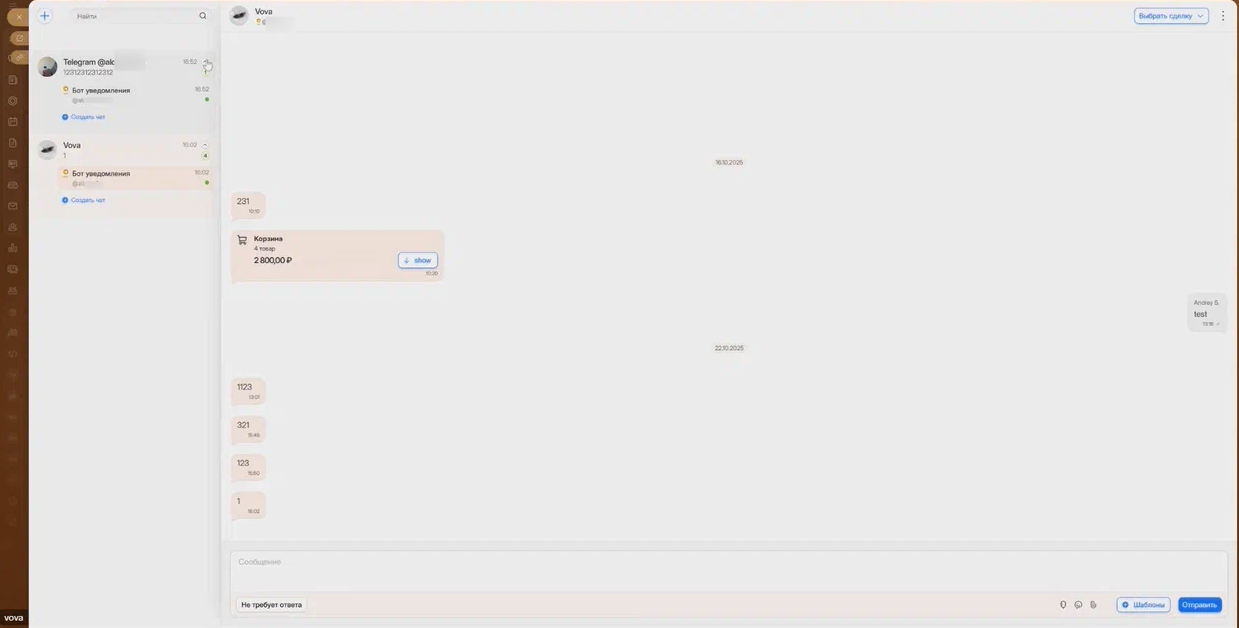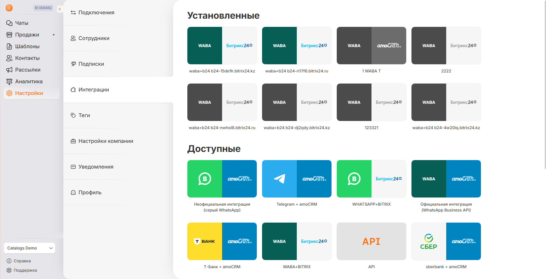 * подключить один или несколько номеров WABA, WhatsApp, Telegram и общаться с клиентами в едином окне;