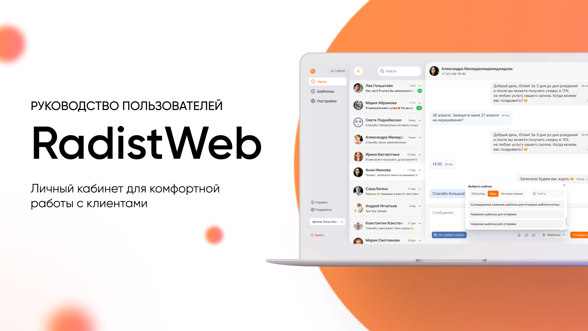 * отправлять клиентам шаблонные сообщения WABA для начала диалога. [Подробнее здесь (нажмите чтобы перейти).](https://docs.radist.online/radist.online-docs/nashi-produkty/radist-web/shablony)
