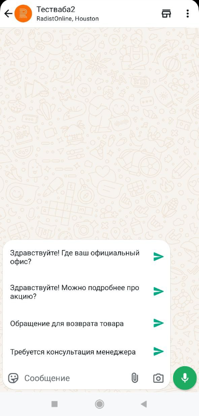 * Настройте стартовые сообщения для официальной интеграции WhatsApp Business API (WABA), чтобы ваши клиенты, открыв ваш профиль, могли быстро выбрать и отправить вам сообщение из предложенного списка:&#x20;