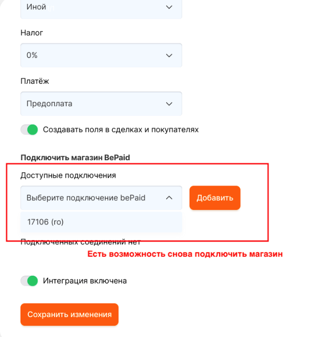 По нажатию кнопки "Отключить" - магазин отключится от интеграции с амоСРМ, но останется подключенной в ЛК Radist Web. \