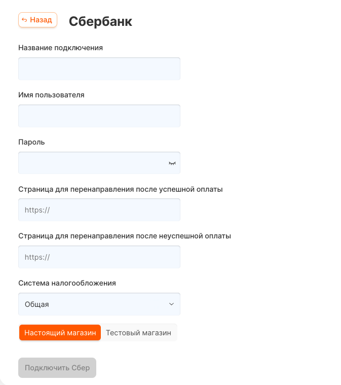 Перед подключением у вас уже должен быть создан интернет-магазин в Сбербанк.