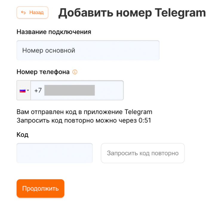 ***Чтобы подключить интеграцию с Telegram, сначала добавляется номер в личный кабинет (далее - ЛК), потом добавленные номера подключаются к амоCRM в том же в ЛК.***