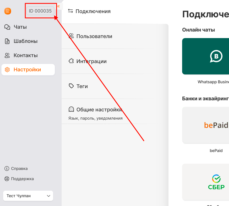 При обращении вашего сотрудника по вопросам работы интеграции в тех.поддержку, он должен указать ID компании из ЛК.