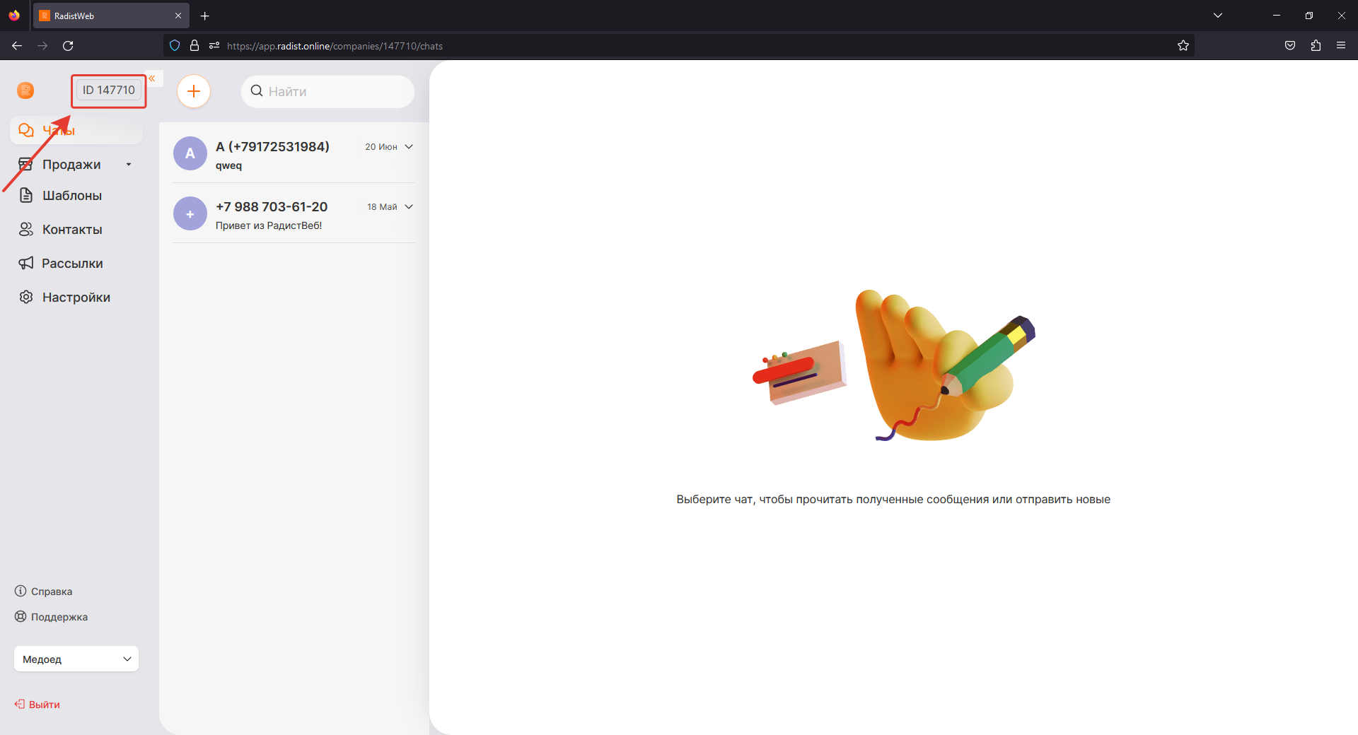 Взять номер компании можно в личном кабинете RadistWeb <https://radist.online/login> в левом верхнем углу (рис.8)