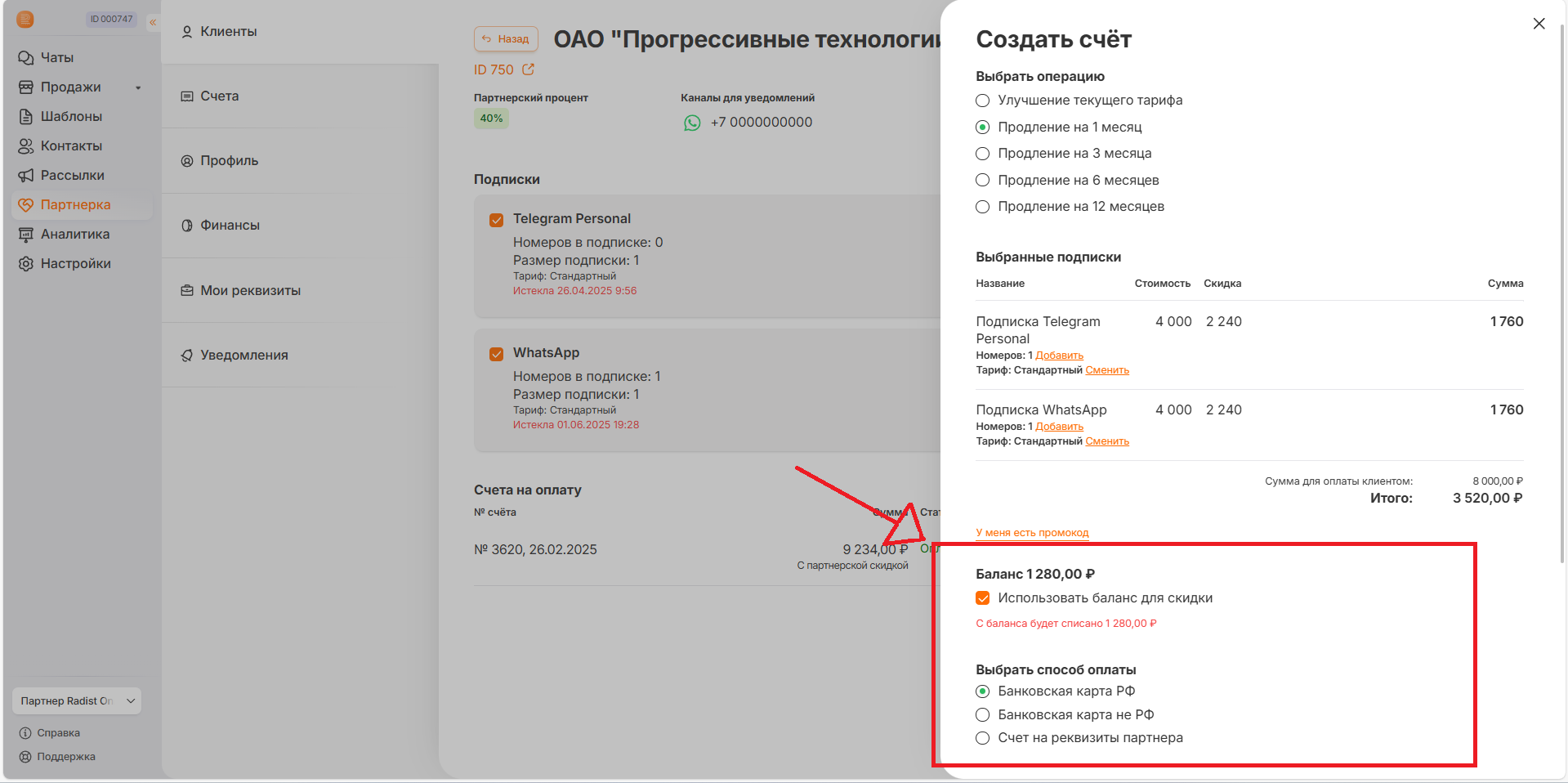 [Создание счета из раздела "Клиенты"](#id-1.-modul-partnerka-razdel-klienty--sozdat-schet)