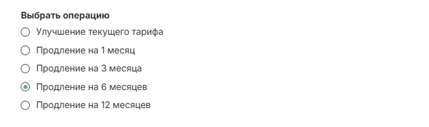 1. **Выбрать операцию** - улучшение текущего тарифа (в любой момент действия лицензии вам доступна возможность апгрейда и расширения кол-ва номеров) или продление тарифа на 1/3/6/12 мес